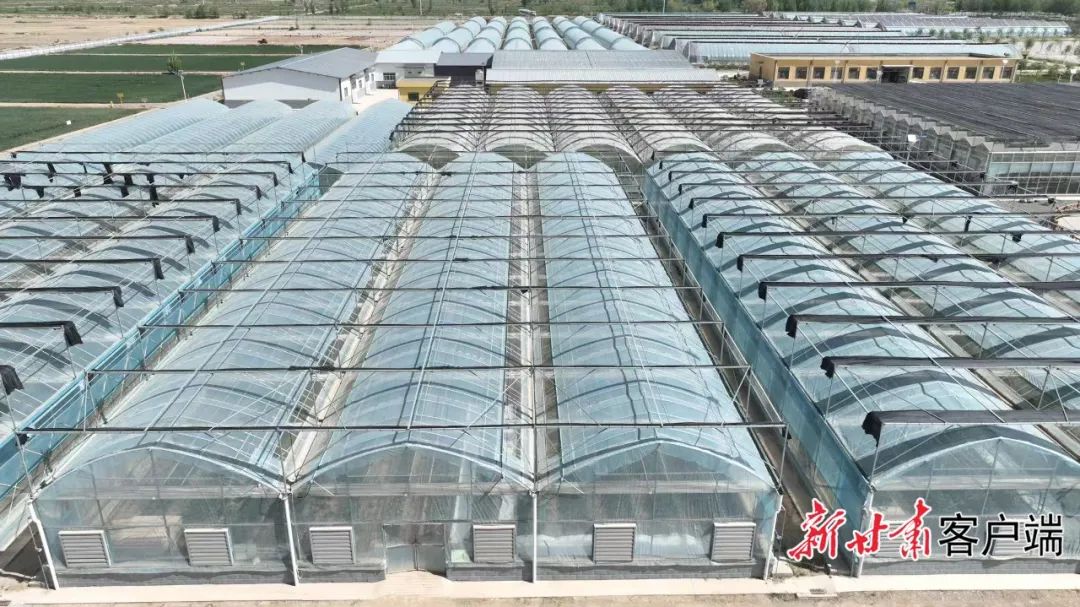 蘭州新區(qū)秦川現(xiàn)代農(nóng)業(yè)產(chǎn)業(yè)園連片的智能溫控大棚。本文圖片均由新甘肅·甘肅日報記者 魏曉倩 攝